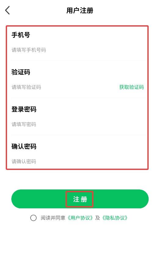 3、注册需输入手机号、验证码及设置登录密码,确认后即可完成账号注册。