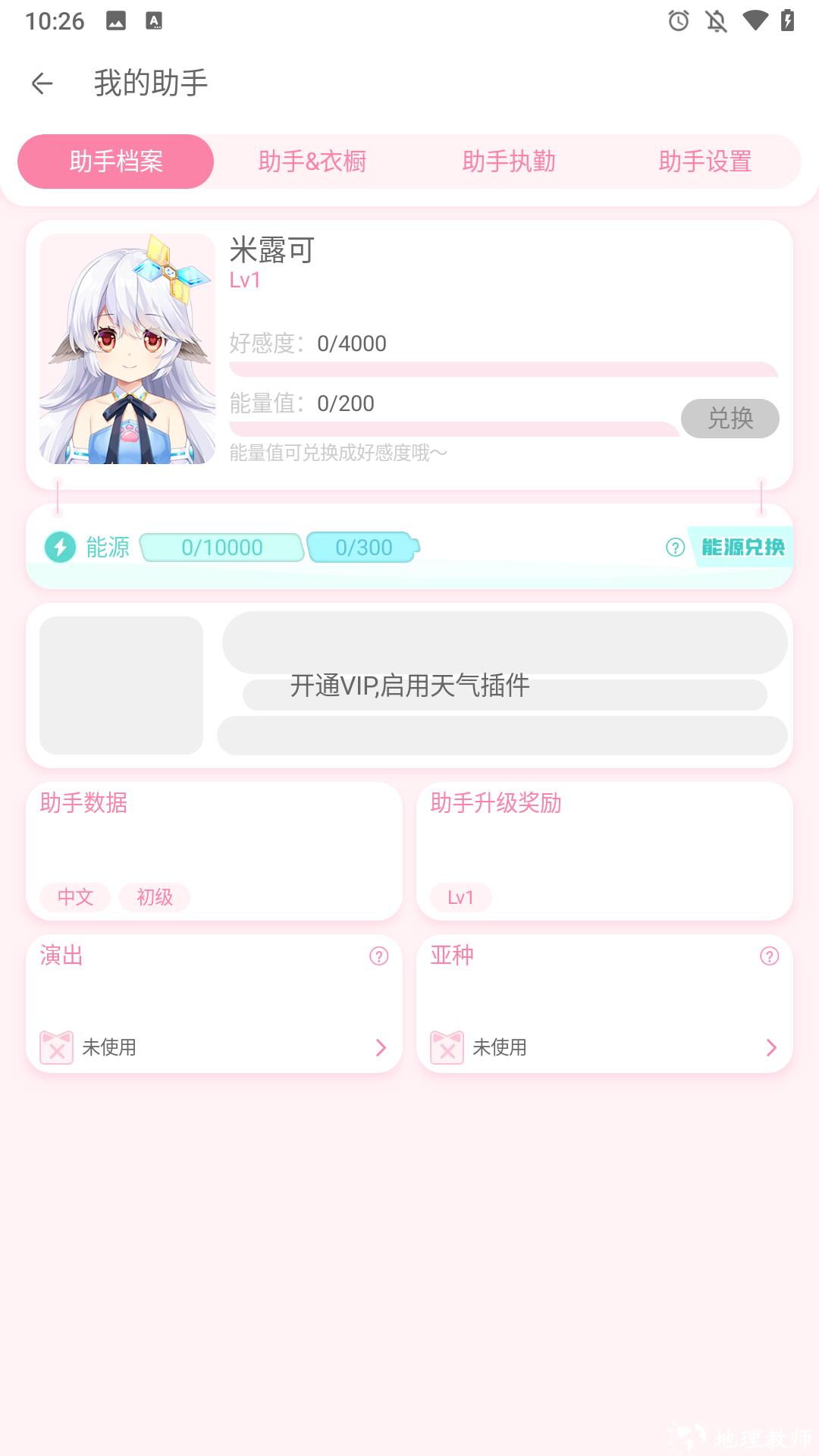 3、点击 “我的助手” 选项,可查看虚拟助手的好感度、能量值等相关数据。