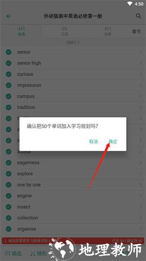 3、可以顺选,可以随机,选择完毕点击“确定”,就能进入到学习界面了。