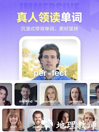1、首创真人实景拆解音节:国内首创"真人外教实景拆解音节"的学习模式。借助真人出镜的口型、表情与肢体动作,使单词记忆更为立体直观,有助于掌握地道发音。