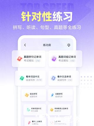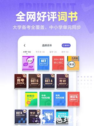 3、海量分类词库:词库内容覆盖从小学至专业的各类考试与教材,包括四六级、考研、托福雅思、商务英语等。词书数量庞大,据称能满足全年龄段学习者的不同需求。