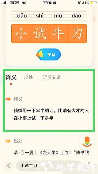1、有道少儿词典支持查询汉字、词语、成语及古诗文,内容包含国家发布的通用汉字规范。