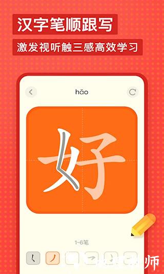 2、汉字笔顺与多感官学习:为每个汉字配置了笔顺动图及跟写练习,并录入真人发音,帮助儿童通过视觉、听觉和动手写相结合的方式掌握汉字。