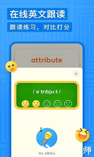 5、设有跟读功能并附带发音评分,有效锻炼英语口语能力。
