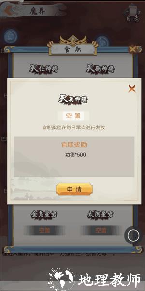 ③官职:每个界都有27个官职,官职的大小对应的是功德(官职从上往下,从大到小),担任官职会在每天0点额外获得功德。提醒:三界的同一位置官职给的功德是一样的。