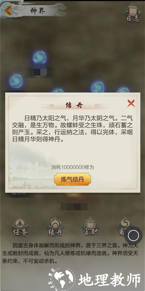 ③魔界:邪气值达到1000,缴纳1万灵石可进,魔界既可吸取别人修为,也可抢夺灵石,可以随便踢人出界(只要实力比别人强),每天最多吸取/抢夺5次。魔界是实力为尊,没实力最好不要去魔界。
