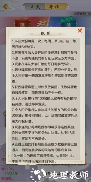 1、类似于其他游戏的竞技,活动时间是每天8点—23点,每人有20次的挑战机会,最多可失败5次,若是5次失败都用完了,即便还有挑战次数也没法继续比武了。