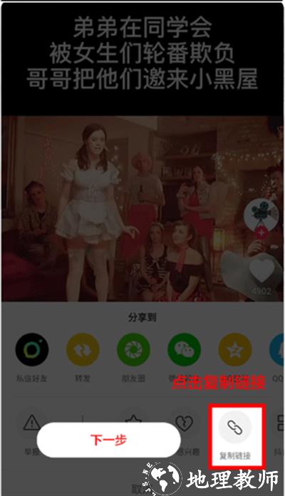 2、在弹出的选项框中,选择并点击复制链接选项。
