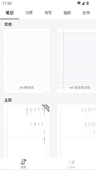 1、模板分类齐全:按笔记、习惯、练字、画图、创作五大类划分,包含横线纸、田字格、UI 设计纸等多样样式,覆盖多领域需求。