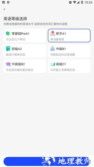 3、从新手、初级、中级、高级等选项中,选择匹配自身能力的英语等级,开启对话练习。