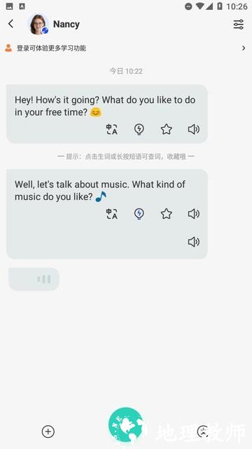 4、发送语音与系统进行对话,软件会实时分析发音、语法等方面情况,并给出相应反馈。