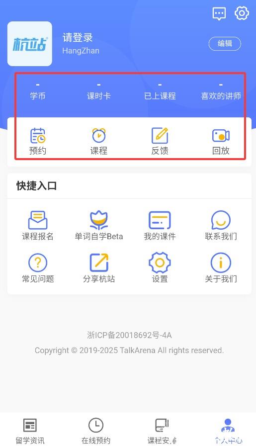 4、个人中心集中展示学币余额、课时卡、已学课程及收藏的讲师信息。