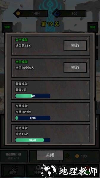 4.进入 “成就” 界面,可查看关卡成就、击杀成就、登录成就、在线成就、锻造成就等的完成进度,点击 “领取” 按钮获取对应的奖励。