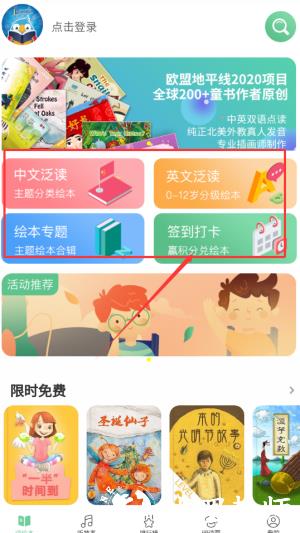 2、资源特色:整合全球精选绘本、点读翻译及互动课程。