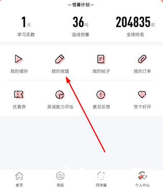 2、如需复习之前做过的题目,只需在个人中心界面找到“学习记录”功能进行查阅