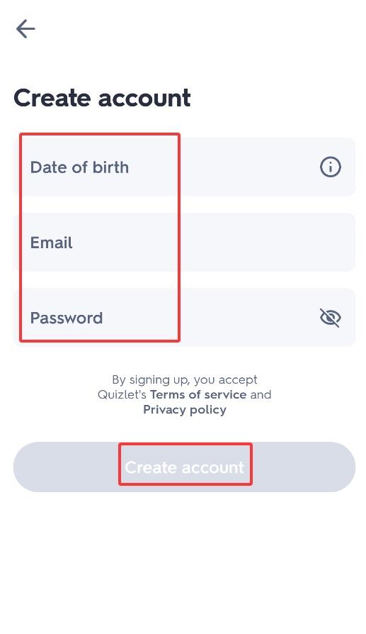 2、在创建账户页面,填写出生日期、电子邮箱并设置密码后即可完成注册。