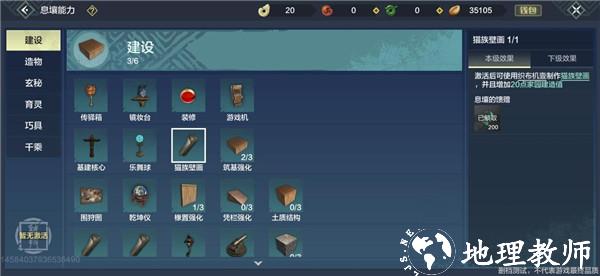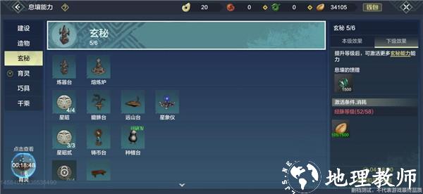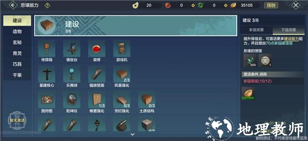 首先面前有六大分支,分别为建设、造物、玄秘、育灵、巧具、千乘,每条分支对应一条玩法,可谓是极大的丰富了生活玩家的可玩性。
