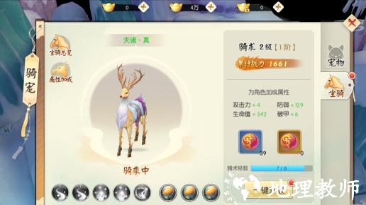 【培养】玩家还可以升级骑术,骑术分为阶和等级,等级1-10级,10级满后升1级,每升1级都有属性奖励,升到某些特定阶数,会有被动技能奖励和坐骑奖励