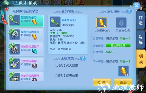 武器和头盔毫无疑问是选中天损石,鞋子和腰带用天速石,铠甲选择天寿石,项链根据自身情况进行选择即可。