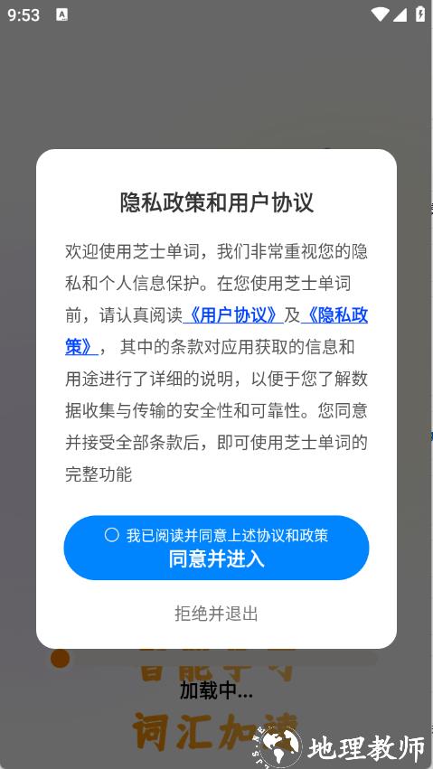 1、首先在地理教师下载网下载芝士单词 APP,打开后查看并同意隐私政策与用户协议。