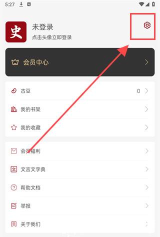 1、 启动应用后进入我的页面,找到并轻触右上角的设置入口。
