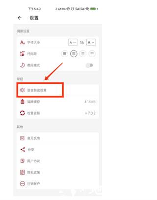 2、 轻点朗读设置选项,页面将跳转至语音功能配置界面。