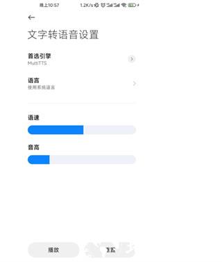 3、 在该界面可对朗读语速、声音高低以及使用的发音引擎进行自定义调整。