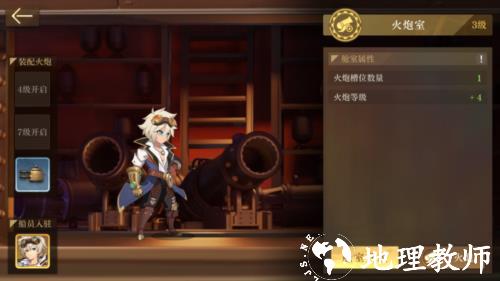火炮室:可以通过升级来提升火炮系统的等级、和火炮槽位数量。火炮的升级材料可以在商城购买。