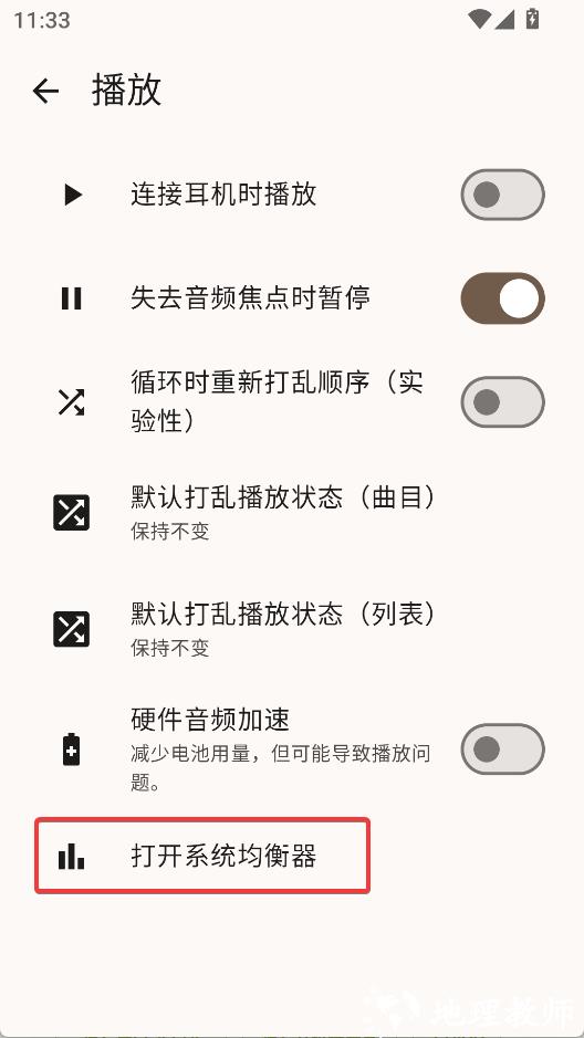 3、点击【打开系统均衡器】