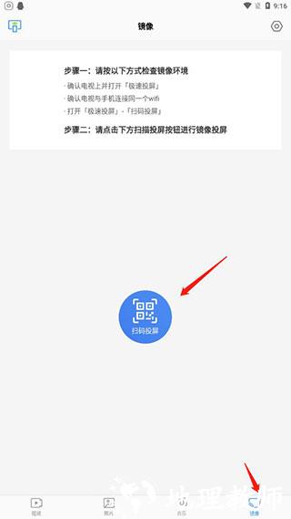4、二维码扫描投射:用浏览器或极速投屏手机端APP,扫描电视上的投射二维码,将手机/平板的屏幕镜像传输到大尺寸电视上,扫描即传,快速感受!