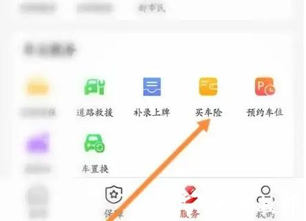 2、 进入服务功能页面后,从列表内定位并轻点“买车险”这一选项。