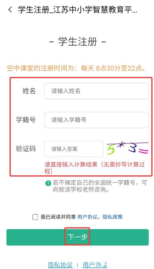 4、学生需填写姓名、学籍号及验证码,点击下一步设置密码后即可完成注册。