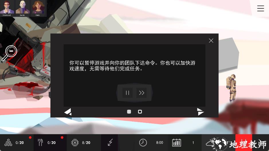 3、你可以暂停游戏并向你的团队下达命令。你也可以加快游戏速度,无需等待他们完成任务。