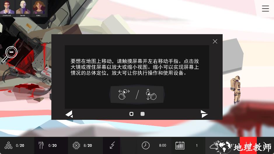 2、要想在地图上移动,请触摸屏幕并左右移动手指。点击放大镜或捏住屏幕以放大或缩小视图。缩小可以实现屏幕上情况的总体定位,放大可让你执行操作和使用设备。