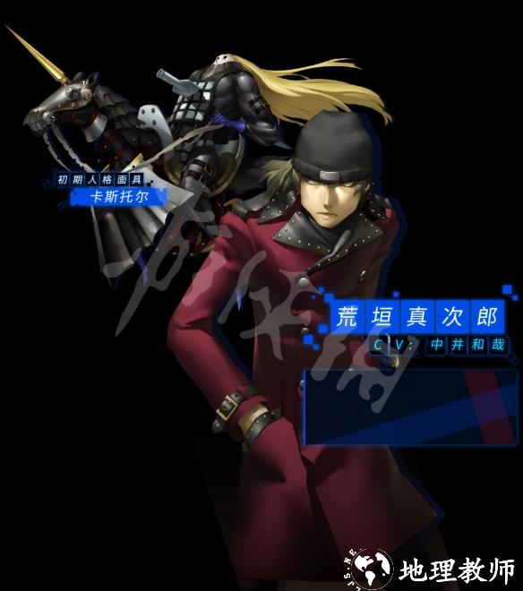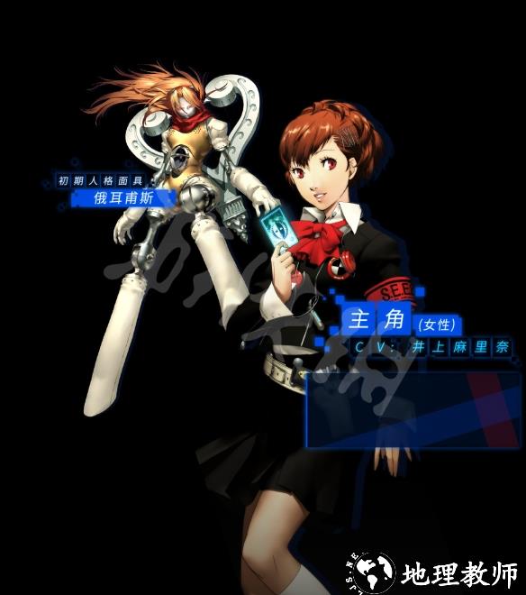 作为玩家的化身,主角拥有“愚者”秘仪,具备使用多种Persona的能力,并成为天鹅绒室的特别来客。转学到月光馆学园后,在宿舍被阴影袭击时展现了超凡的战斗潜力,因此被选为特别课外活动部(SEES)的现场指挥。在十年前的一场事故中失去父母,并因那场意外将“死亡”封印于体内。