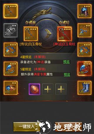 传说装备可通过此方式提升星级,星级提升至5星后即可进阶成神话装备,除基础属性能大幅提升外,还能获得更多条附加词条。另外神话装备均拥有一条神话属性,属性将随角色等级提升而成长。