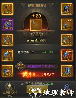 装备强化是最基础的实力提升方式。勇士可以使用铁矿石对人物装备进行强化,当人物全身装备强化至一定条件可获得强化加成,各项人数属性和战力均可大幅提升!