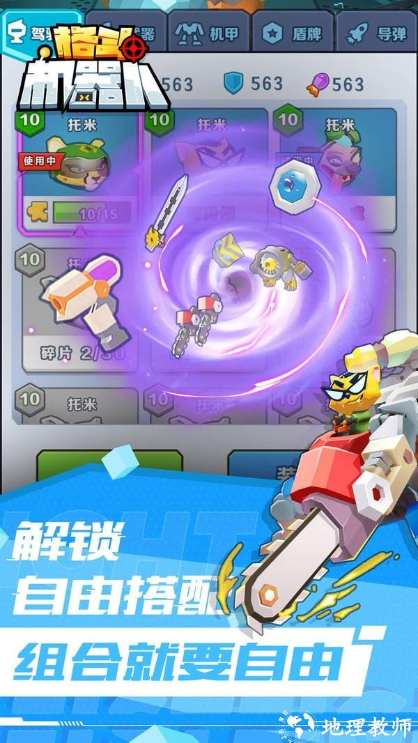 2、锦标赛上,玩家可以自定义6名可爱的机甲驾驶员,驾驶装备各种近战和远程的diy的机甲;
