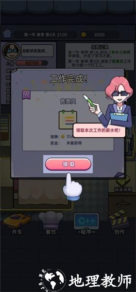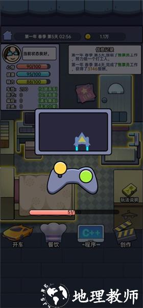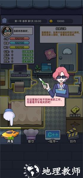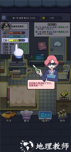 2、时间管理挑战:需在有限的时间内,科学分配学习、工作与娱乐的时长,既要高效赚取资金,又要维持自身各项属性的平衡,充分考验时间规划能力与策略布局思维。
