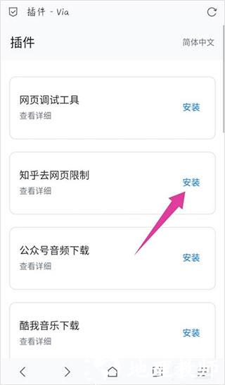 6、 跳转至脚本仓库后,点击所需插件后的安装按钮完成添加