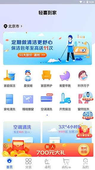 2、切换至【分类】页签时,能够查看所有服务项目分类,如高端保洁、星级保姆、科学坐月子等;