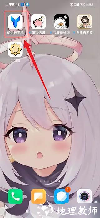 1、在移动设备主屏幕找到应用入口,轻触启动优达云手机服务程序;