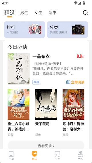 1、精选界面提供热门书籍推荐