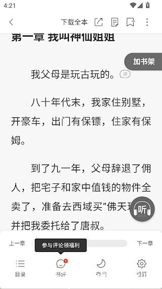 4、章节互动点评:设置“本章说”功能,阅读过程中可针对章节内容撰写点评,与其他读者交流阅读感受,增强互动性。
