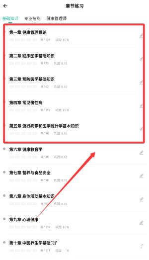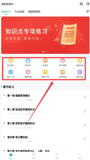 1、章节练习模块:覆盖健康管理师考试全部科目单元,每章配备大量高质量习题,支持逐章突破夯实基础。