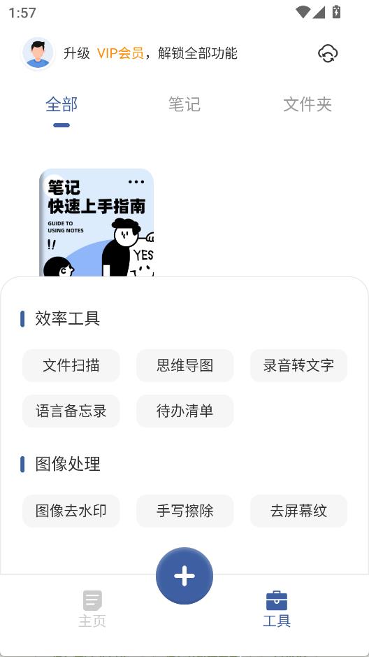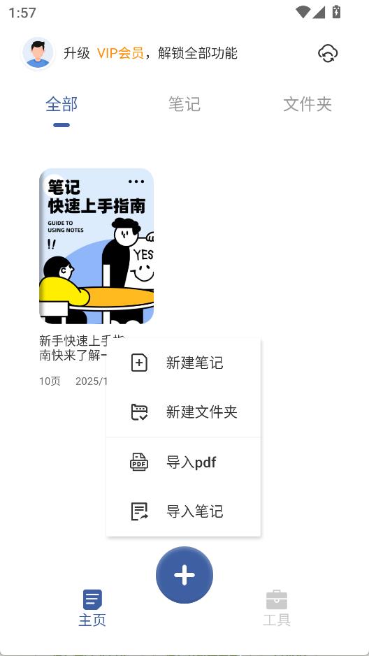 2、点击+新建笔记或文件夹