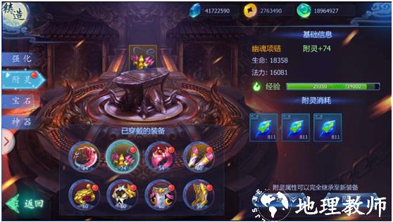 2、附灵:当道友发现对自己没有什么用处或换装备的时候,可以给已穿戴的装备进行附灵,附灵所增加的属性是固定值,附灵最高等级和角色等级相等,附灵等级可以完全继承至新装备上。