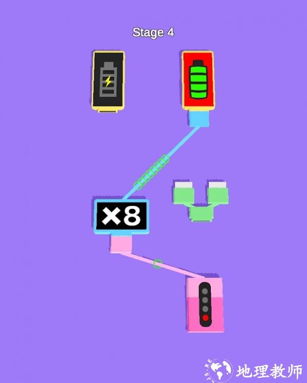1. 新颖的解谜方式:游戏采用独特的解谜机制,玩家需要仔细观察关卡中的设备布局,通过拖动、旋转等方式,将充电线正确连接到电源和待充电设备,考验玩家的逻辑思维和空间想象能力。