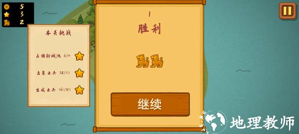 5、最后,成功占领敌方城池即可获胜,并获得星星和虎符,以及铜币;