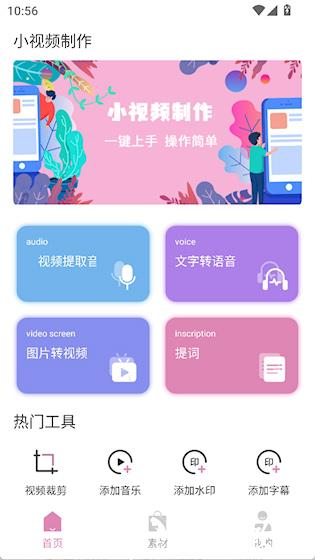 小视频制作是一款视频制作工具,操作界面简洁直观,没有专业基础也能快速上手,使用过程流畅,功能覆盖视频制作全流程,涵盖剪辑、音频处理、字幕添加等模块,融入提词、文字转语音等特色能力,内置丰富素材库,包含音乐、贴纸等资源,满足多样创作场景。